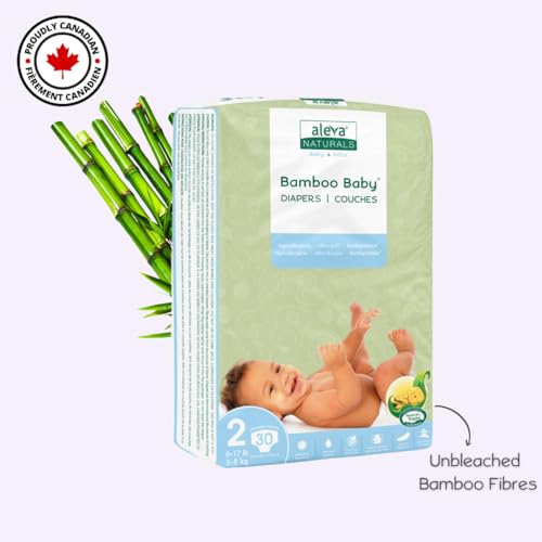 Keep your baby’s bottom clean & comfortable with the Aleva Naturals Bamboo Baby Diapers. Our diapers top and bottom layers are made from unbleached bamboo fibres called Bamboo Kun. Together with the extra absorbability and breathable back layers, these diapers will help keep your baby’s bottom soft, supple and silky smooth. Plus, our diapers have a 3-line wetness indicator that changes from yellow to green, to let you know when it is time for a change & flexible side panels and pocketed back waistband ensure a snug and comfy fit. The Bamboo Baby diapers are feathery soft, durable, unbleached and biodegradable. Designed to provide maximum comfort for your baby, these eco-friendly diapers will be your new go-to. Like all Aleva Naturals products, the Bamboo Baby Diapers are made with premium quality ingredients, so you can enjoy a safe product without harsh chemicals or additives. Comfortable, absorbing & eco-friendly bamboo diapers for babies; A diaper change essential; Flexible side panels & pocketed back waistband for a snug and comfy fit; With a wet-line wetness indicator; Feathery soft & unbleached; Proudly Canadian