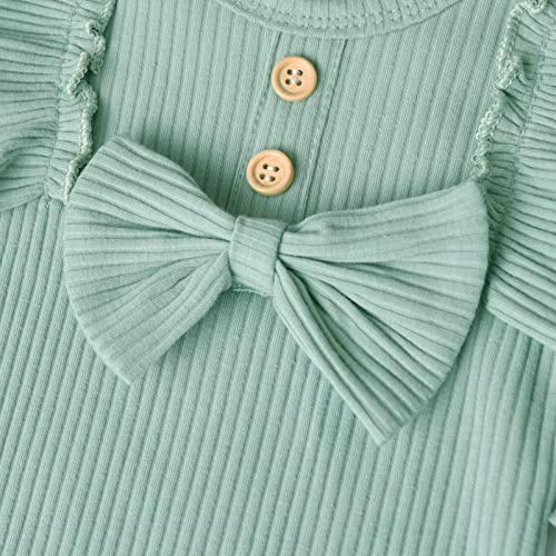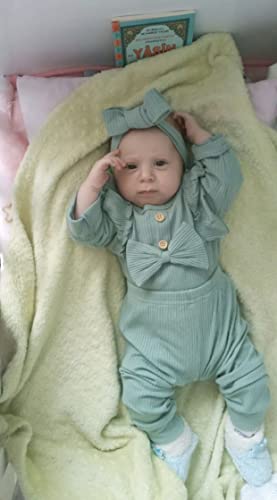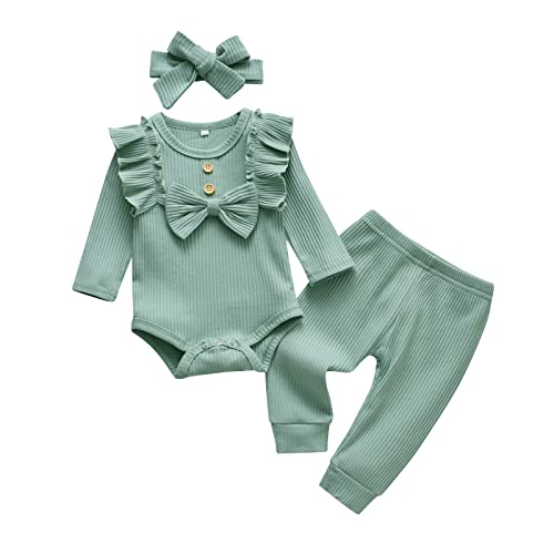 Newborn Baby Girl Outfits Clothes Set Infant Long Sleeve Romper and Pant Bow Headband 3pcs