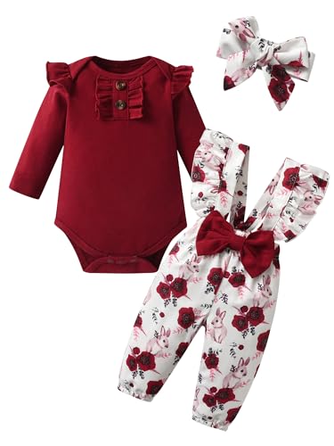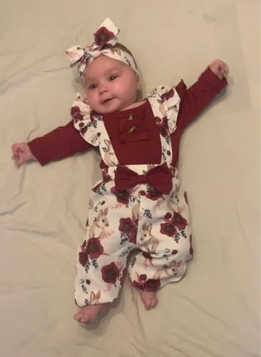 Newborn Infant Baby Girl Outfits Clothes Long Sleeve Rompers Floral Bow Overalls Pants Headband 3Pcs Set