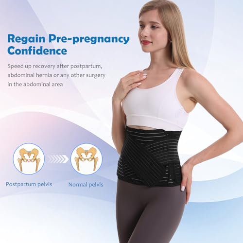 Paskyee Postpartum Belly Band, Abdominal Binder Post Surgery Belly Wrap, C Section Recovery Must Haves, Girdle for Postnatal Care, Waist/Pelvis Belt for Back Pain Relief Black S/M