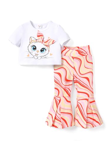 PATPAT Girls Clothes Summer Outfit Set 2 Piece Short Sleeve Crop Top and Bell Bottom Pant Toddler to Big Kids