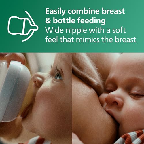 Philips Avent glass baby bottles make it easy to combine breast and bottle feeding with a soft, wide breast-shaped nipple that mimics the shape and feel of a breast