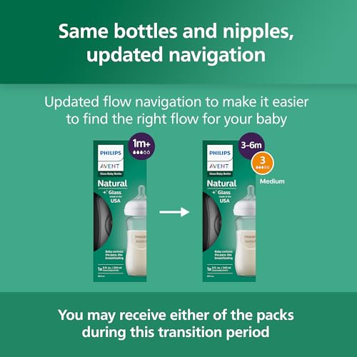 Philips Avent Natural glass bottles for babies support the well-being of your baby so you can take the best care of yourself. The Natural Response nipple with the unique opening and tip lets your baby control the pace of the milk flow, releasing milk only when actively drinking – just like babies do during breastfeeding. When pausing to swallow and breathe, no milk flows. Feeding feels as natural as from the breast! Easily combine breast and bottle feeding with a wide, soft and flexible nipple that mimics the shape and feel of a breast. It helps the baby to latch on and feed comfortably, using its natural rhythm. With the no-drip design, the nipple helps prevent spills and lost milk. An anti-colic valve integrated into the nipple is designed to reduce colic and discomfort by sending air away from your baby’s tummy. The ergonomic shape makes it comfortable for parents to hold and easy for small fingers to grasp. Assembly is simple, with only a few parts, while the wide bottleneck makes filling and cleaning easy. Philips Avent Natural glass baby bottles are made of premium quality borosilicate glass, a BPA-free material. They’re heat and thermal shock resistant, so they can be safely stored in the fridge, warmed and are easy to wash and sterilize. Use the Philips Avent Natural glass baby bottles with Philips Avent Natural Response bottle nipples. It is totally natural for your baby to take 2-3 tries to get milk flowing from a new bottle. We have 5 different nipple flow rates for the Natural bottle. When looking for the right one, age is a guide, but your baby’s approach to drinking and the feeding cues will help determine when to move to a higher or lower nipple flow rate. ¹ IQVIA Health ProVoice Survey 2025, USA