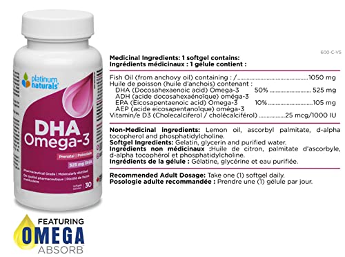 Platinum Naturals Prenatal DHA Omega-3 Softgels, 30 Count – Essential Nutrition for Expecting Mothers, Pregnancy Vitamins with DHA for Women – Supports Overall Wellness During Pregnancy