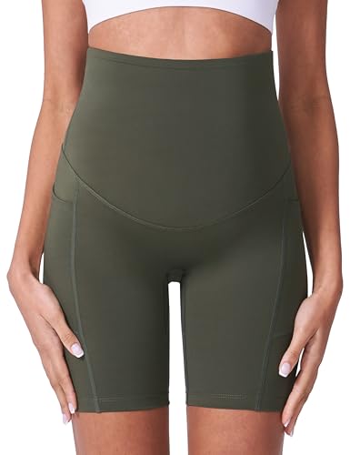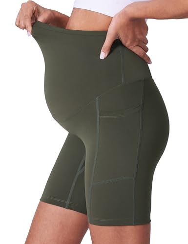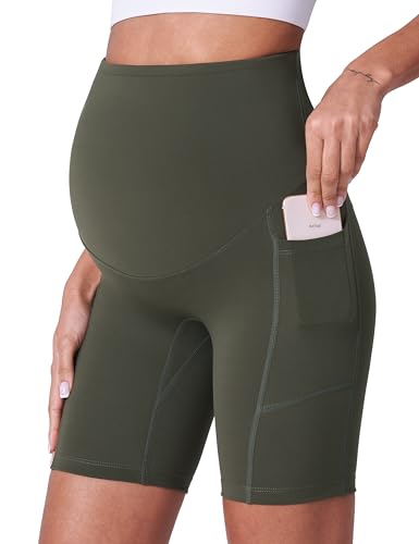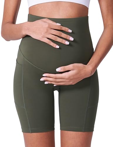 POSHDIVAH Women’s Maternity Shorts Over The Belly Biker Yoga Active Pregnancy Workout Short Pants with Pockets 8″