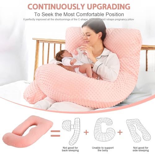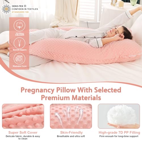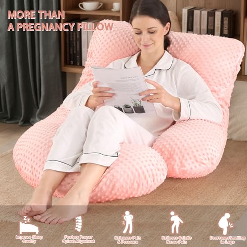 Pregnancy Pillow for Sleeping, G Shaped Full Body Maternity Pillow for Pregnant Women, Removable Cover Jumbo Size Body Support Side Sleeping Pillows for Adults & Pregnancy Must Haves, Mink Dot Pink