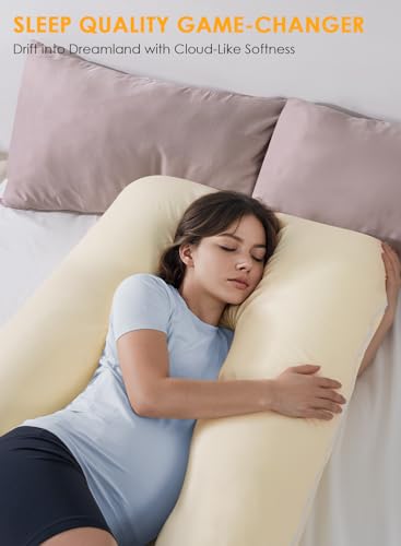QUEEN ROSE Pregnancy Pillows, Soft Cotton U Shaped Body Pillow for Sleeping, Maternity Pillow for Pregnant Women, Beige
