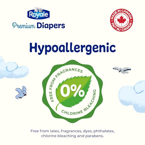 NEW! Royale™ Premium Diapers: Ultra – Soft, Cloth like feel, Made with DRI-Boost™ Technology! Royale™ premium diapers are high quality Canadian-made diaper that keeps your baby dry and comfortable. These diapers are super absorbent, they’re designed with liquid absorbency capacity that help protect from leaks for up to 12 hours. They’re made with DRI-Boost™ technology that allows moisture to flow away from your baby’s skin, helping to keep your baby dry. Royale™ premium diapers are hypoallergenic. They’re free from chlorine bleaching, fragrances, dyes, latex, phthalates, and parabens. They are made with gentle ingredients that are kind to your baby’s delicate skin. So soft they feel like cloth! Designed to keep babies smiling when they’re awake and comfy while they’re sleeping, this diaper provides super soft and cozy comfort to all the babies who wear them. Pick up a pack of Royale™ premium diapers today!
