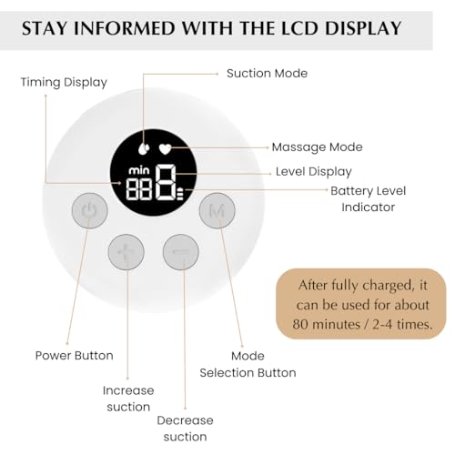 【Intuitive LCD Display】 Stay informed with the sleek smart display of the Yuemi S12, allowing you to monitor pumping time and battery level effortlessly. The one-click pause function enables you to control the pumping rhythm at your convenience, enhancing usability.