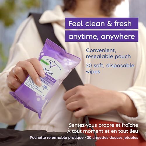 Includes one 20-Count resealable pouch of pH Balance Daily Freshening Wipes by Vagisil